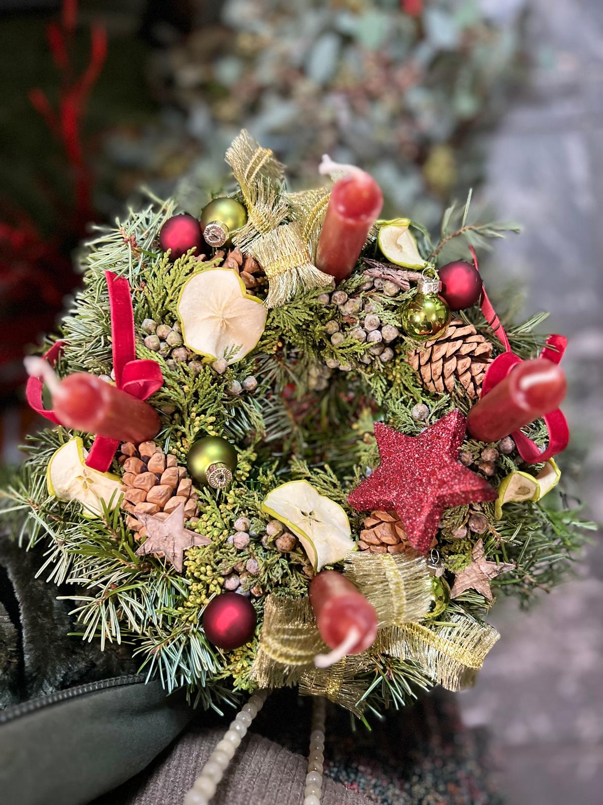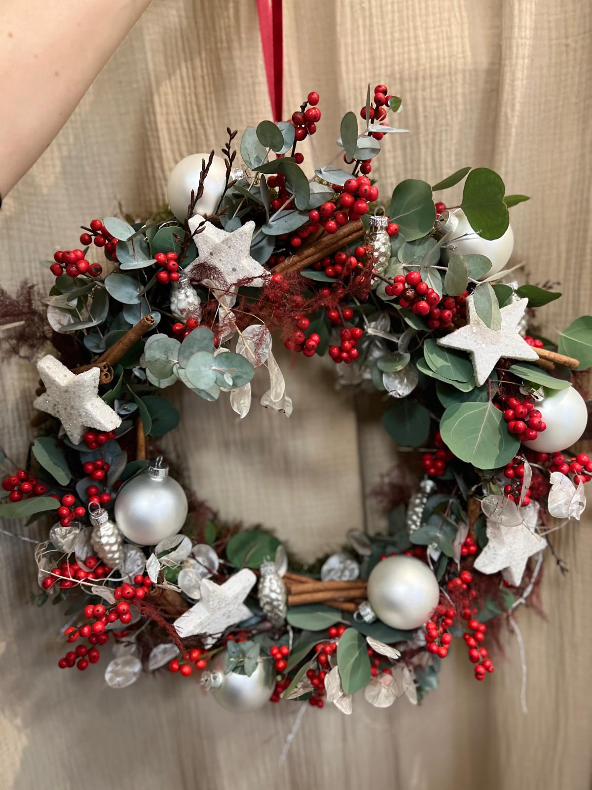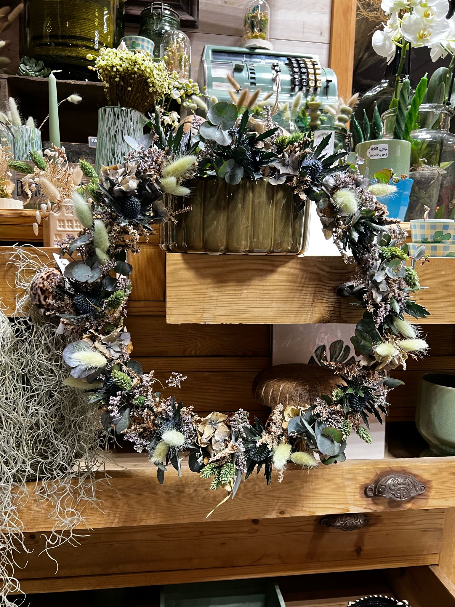 Nous proposons des ateliers créatifs pour réaliser des couronnes florales adaptées à chaque saison ou événement : couronnes de Noël, printanières...
