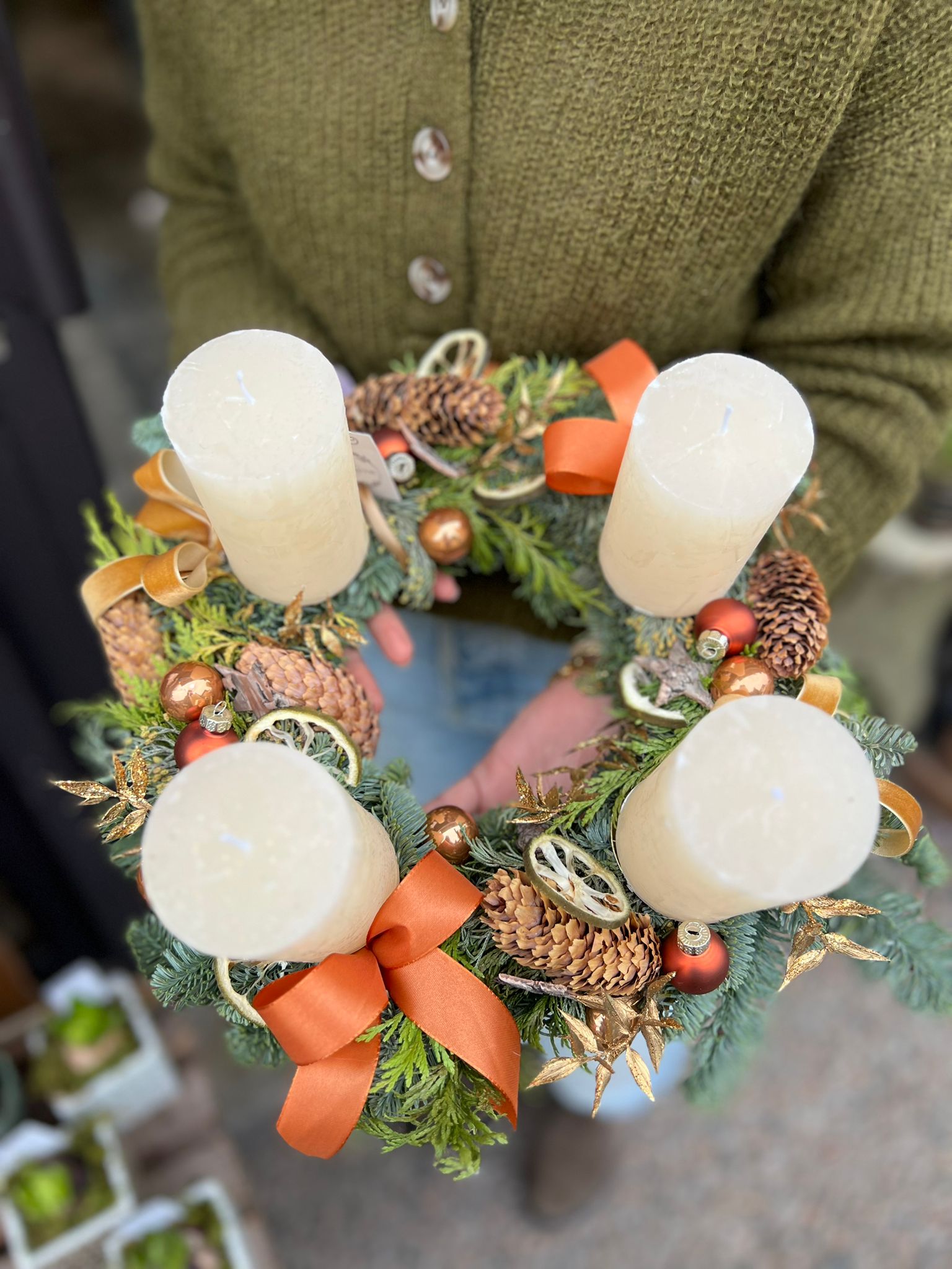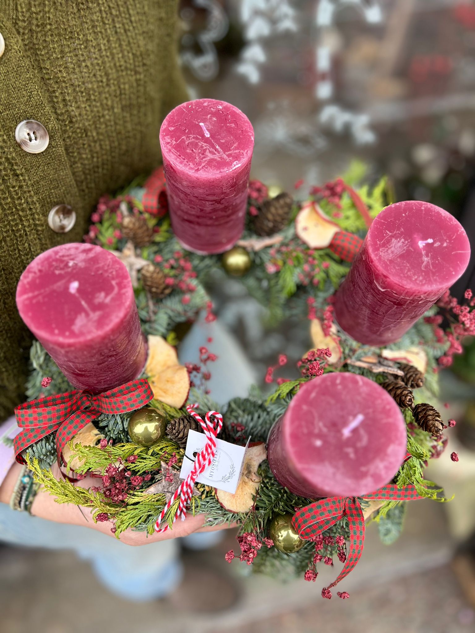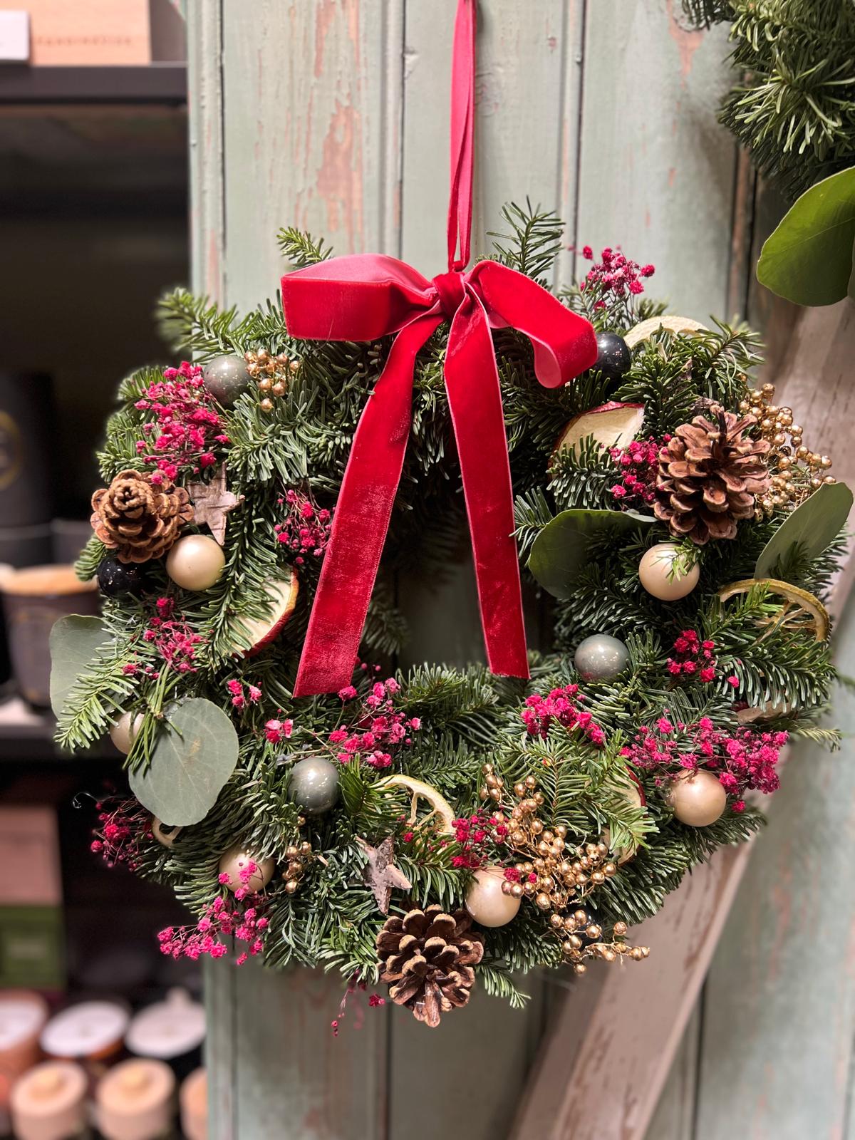 Nous proposons des ateliers créatifs pour réaliser des couronnes florales adaptées à chaque saison ou événement : couronnes de Noël, printanières...